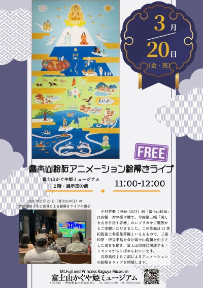 開催中 展示室②特集展示 武田弘氏寄贈富士山コレクション 藍を纏い白を彩る~染付陶磁器の富士山~ 開始2026年02月21日(土) 終了2026年06月21日(日) 富士山かぐや姫ミュージアム 富士山かぐや姫ミュージアム 無料 詳細へ